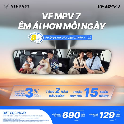 o EC Van, Minio Green, Limo Green, Herio Green, VF 3, VF 5, VF 6, VF 7, VF MPV 7: lãi suất 7%/năm trong 3 năm đầu.