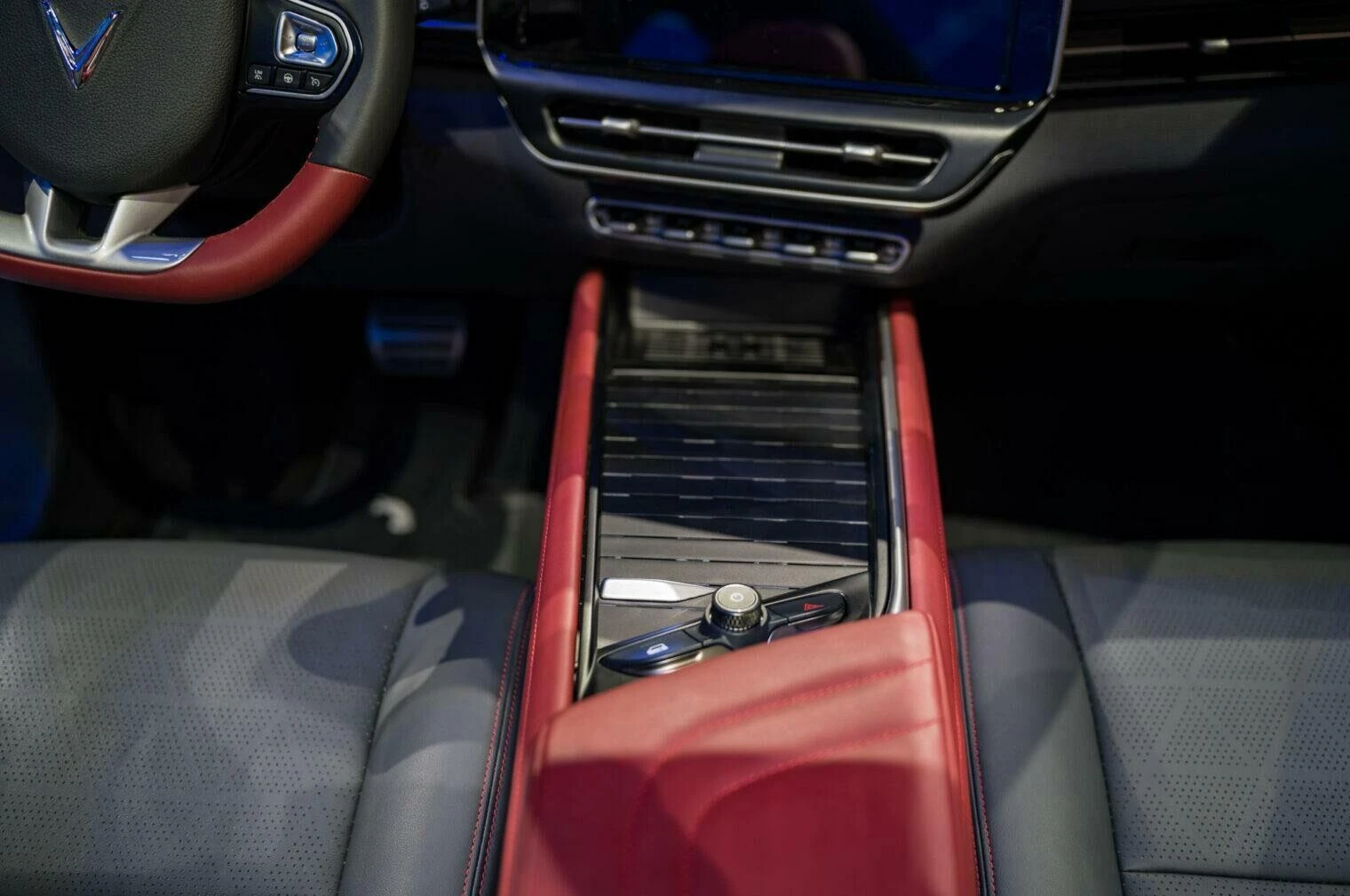 Vô-lăng xe cũng là dạng D-cut thể thao giống như những người anh em cùng nhà, song mang đến cái nhìn sang trọng hơn hẳn nhờ lối phối màu độc đáo. Đồng hồ hiển thị thông tin lái tiếp tục không có mặt trên mẫu SUV điện cỡ C của VinFast.