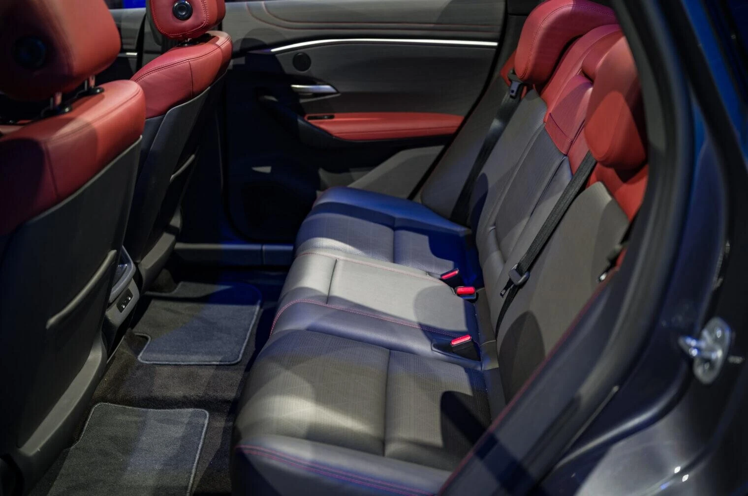 VinFast VF7 có cấu hình 2 hàng ghế, 5 chỗ ngồi. Các ghế trên xe bọc da êm ái, phối 2 tông màu sang trọng. Giữa các hàng ghế cũng có bệ tỳ tay sang trọng. Xe cũng được trang bị cửa sổ trời kích thước lớn, giúp không gian bên trong thêm phần mở rộng và thoáng đãng.