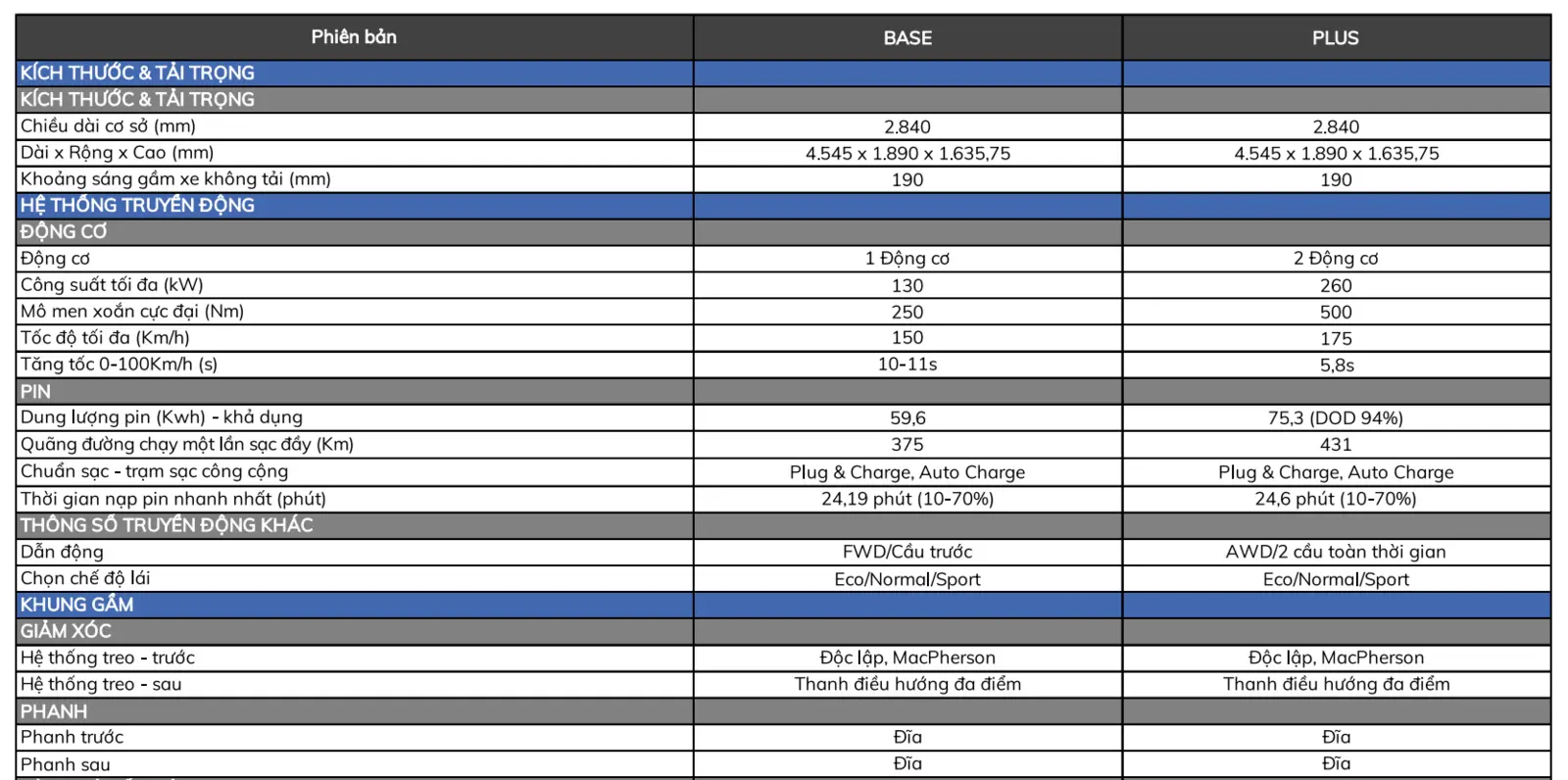 VF7 có hai phiên bản pin, trong đó bản tiêu chuẩn chạy được quãng đường 375 km, bản nâng cao di chuyển được 431 km cho mỗi lần sạc đầy.