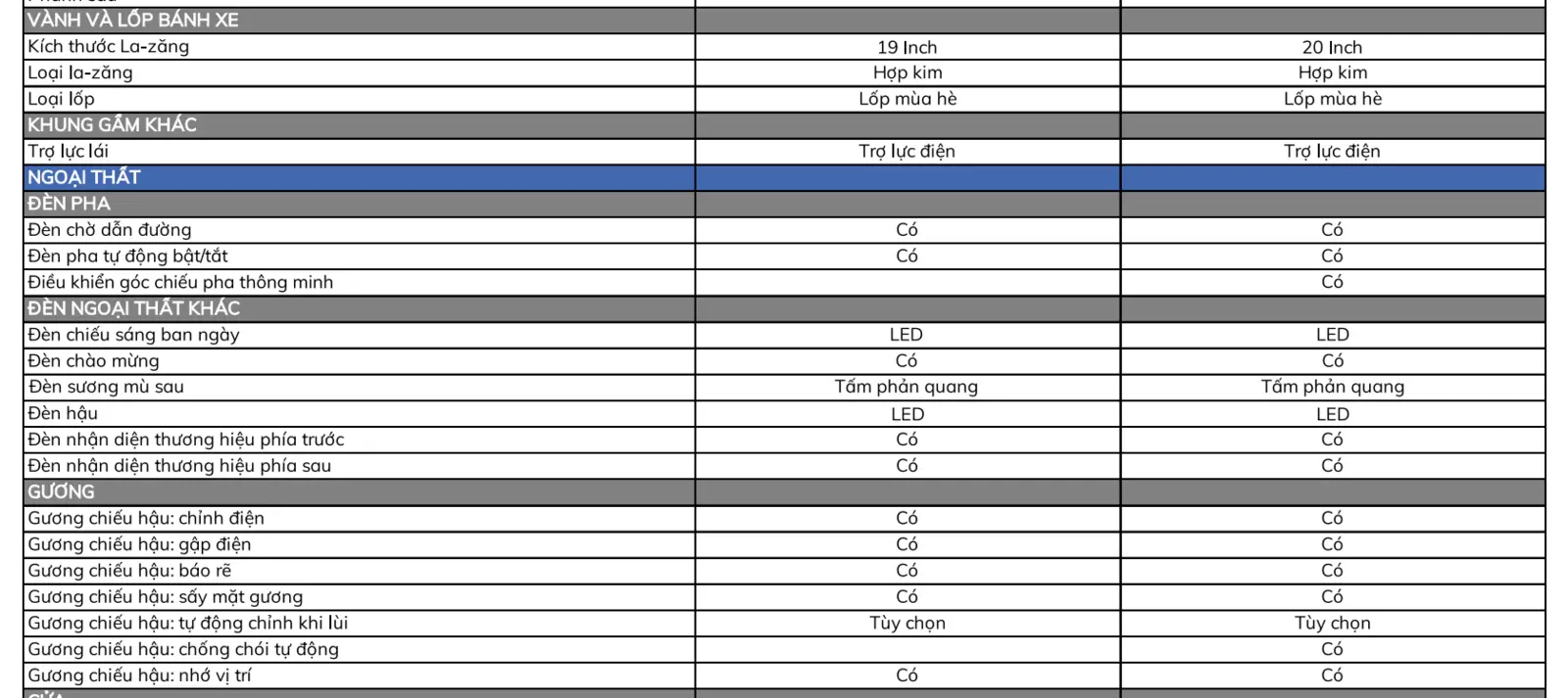 VinFast VF7 được tùy chọn 3 kích cỡ la-zăng là 19 inches đối với VF7 Eco; 20 inch đối với VF7 Plus.